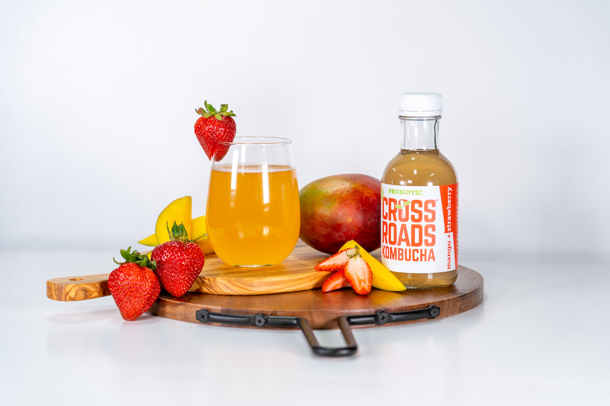 Mango + Strawberry + 100% raw kombucha = tastebud heaven with good-for-your-gut perks.